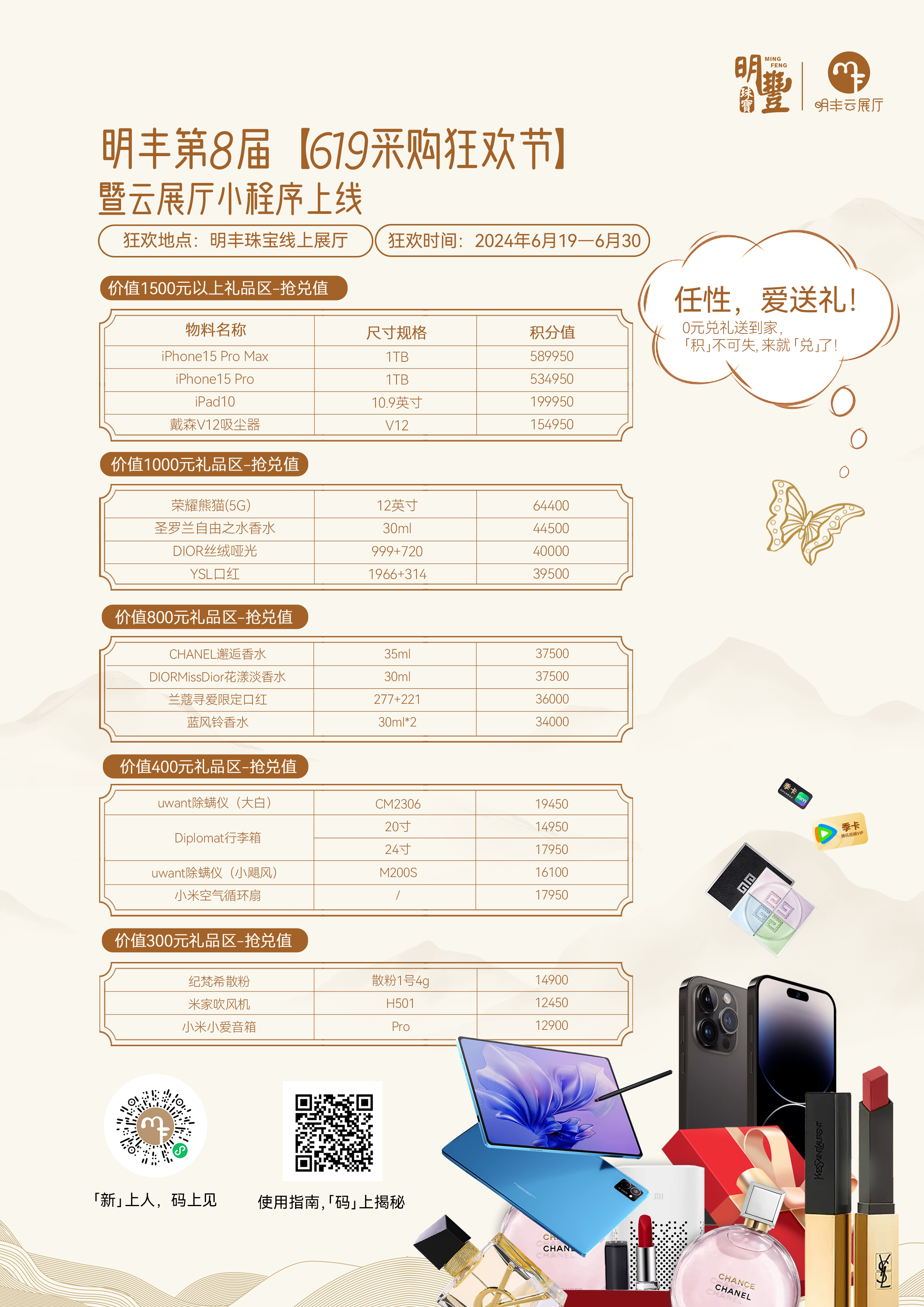 為答謝廣大客戶朋友長久以來的鼎力支持與厚愛,【明豐云展廳】特別推出積分免費(fèi)兌禮機(jī)制。客戶在【明豐云展廳】下單、打卡、觀看直播或參與活動時,均可獲得相應(yīng)積分獎勵。